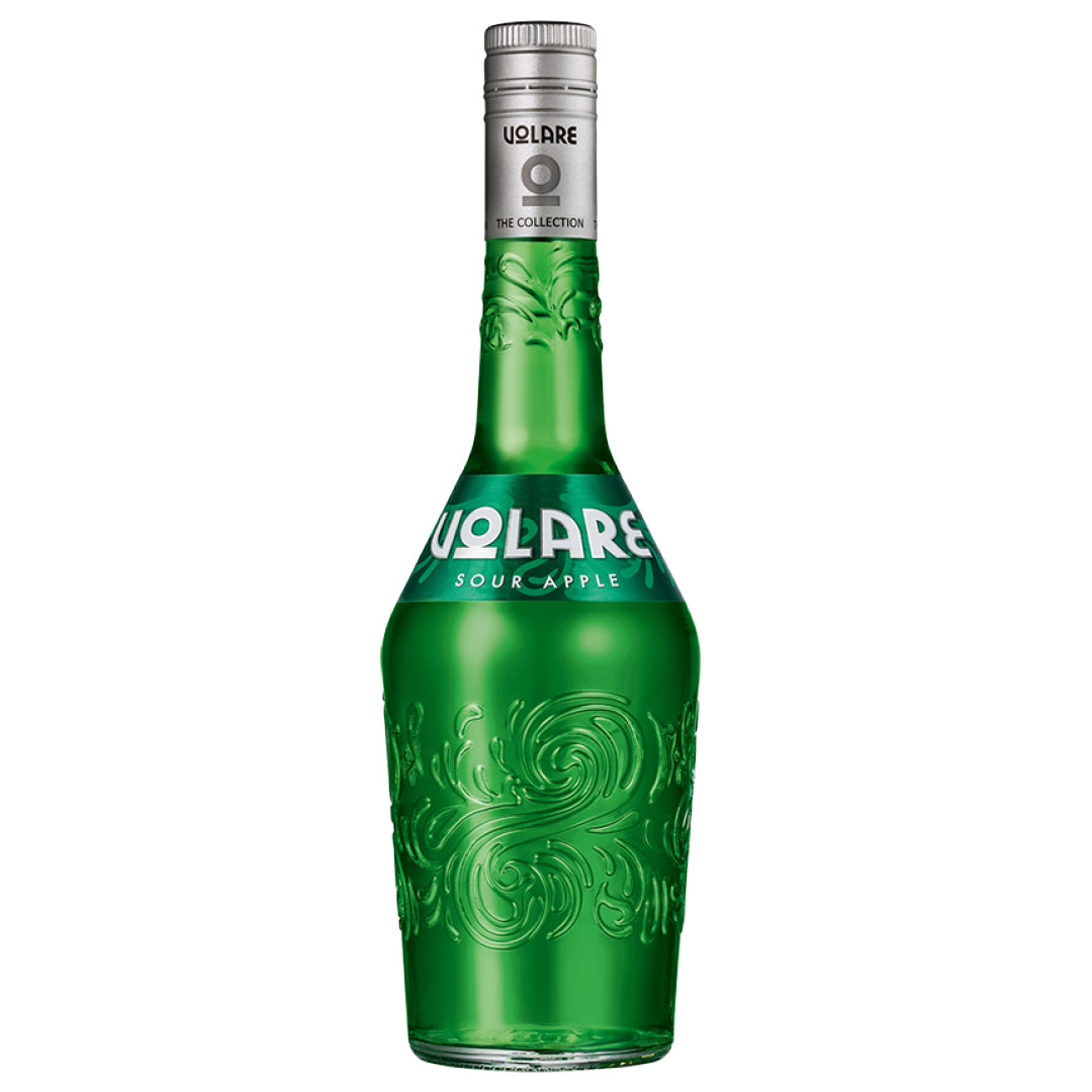 Volare Sour Apple is a liqueur for cocktails made from Italian apple juice that lends cocktails a fresh green apple note. Its bright green colour recalls ripe apples, as does its intense, enveloping aroma. On the palate, it reveals a fresh and delicate flavour typical of apples. The versatility of Volare Sour Apple makes it an ideal ingredient for a variety of cocktails. Its freshness and fruity aroma are perfect for creating iconic cocktails and mixed drinks.